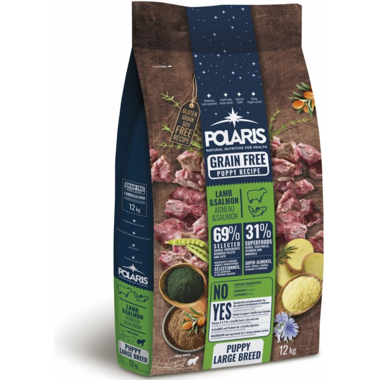 Polaris Grainfree Puppy Large – lambaliha ja lõhega (12kg) on spetsiaalselt suurt tõugu kutsikatele (4–15 kuud) loodud teraviljavaba kuivtoit, mis sisaldab ainult päris liha, mitte lihajahu. Ideaalne valik tundliku seedimisega noortele koertele.