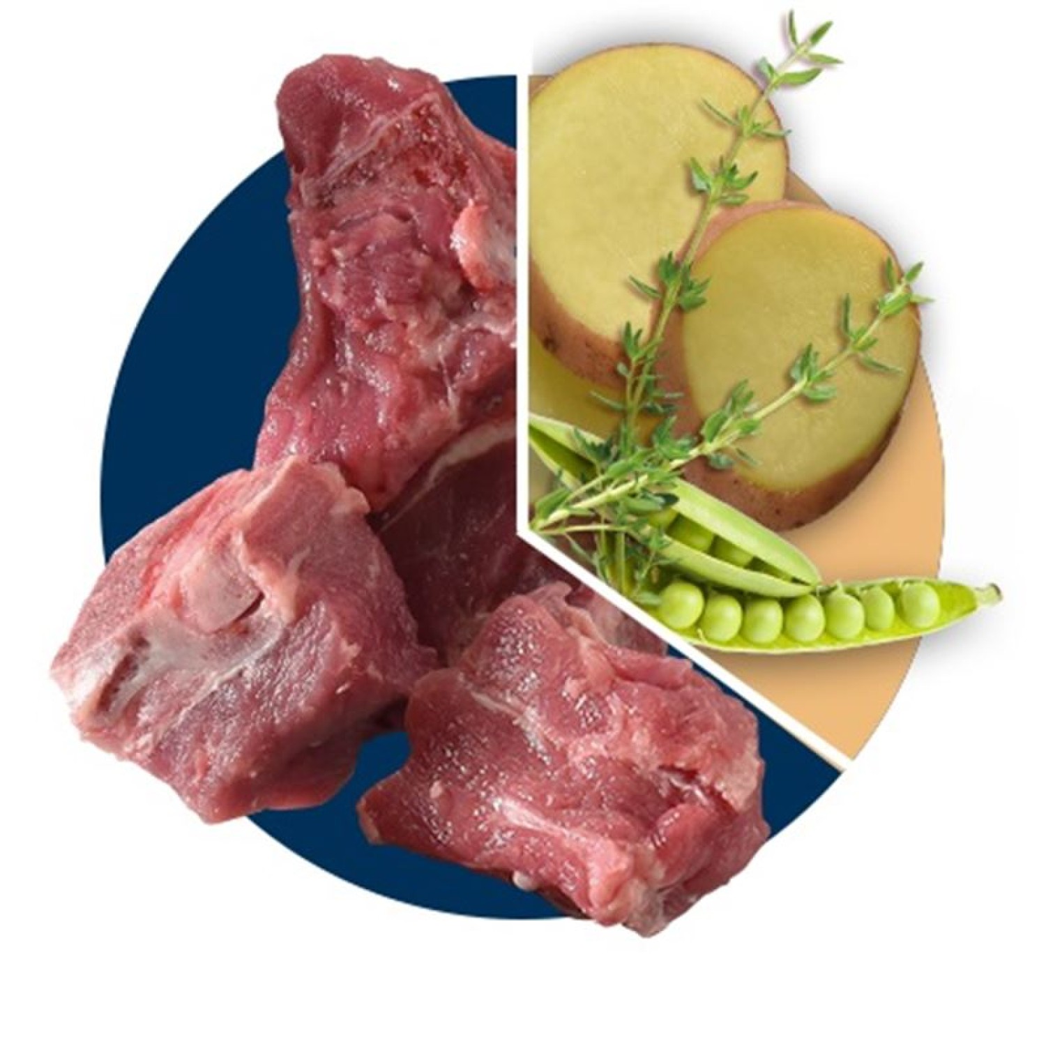 Kondita lambaliha (25%), kuivatatud sealiha (24%), kartulihelbed (17%), herned (12%), kuivatatud lõhe (11%), kartulitärklis, linnurasv, hüdrolüüsitud loomsed valgud, kuivatatud peedimass (3, 5%), pärm (3%), linaseemned (1,5%), vitamiinid ja mineraalid, lõheõli (0,5%), psüllium (0,5%), yucca schidigera ekstrakt (0,2%) , spirulina (0,2%), ActiveMOS (0,2%), MACROGARD (0,1%), astelpaju (0,1%), ürdid (rosmariin, tüümian, petersell, 0,1%), kondroitiinsulfaat ( 270 mg / kg), glükoosamiinsulfaat (200 mg / kg), L-karnitiin (100 mg / kg).